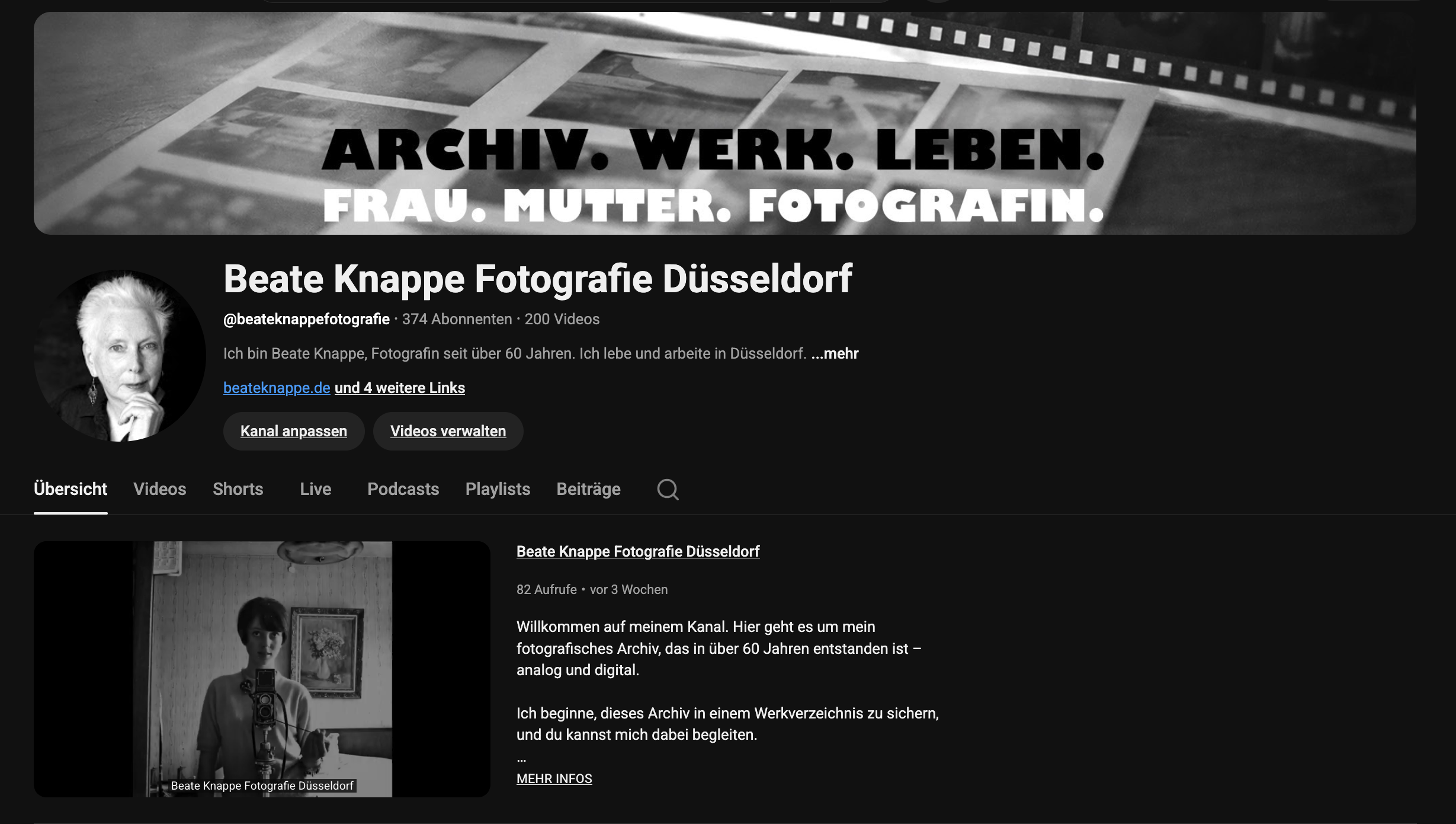 Auf meinem YouTube-Kanal Archiv. Werk. Leben. spreche ich über meine Arbeit, mein Archiv und über das Weiterdenken nach sechzig Jahren fotografischer Praxis – offen, tastend, ohne fertige Antworten.