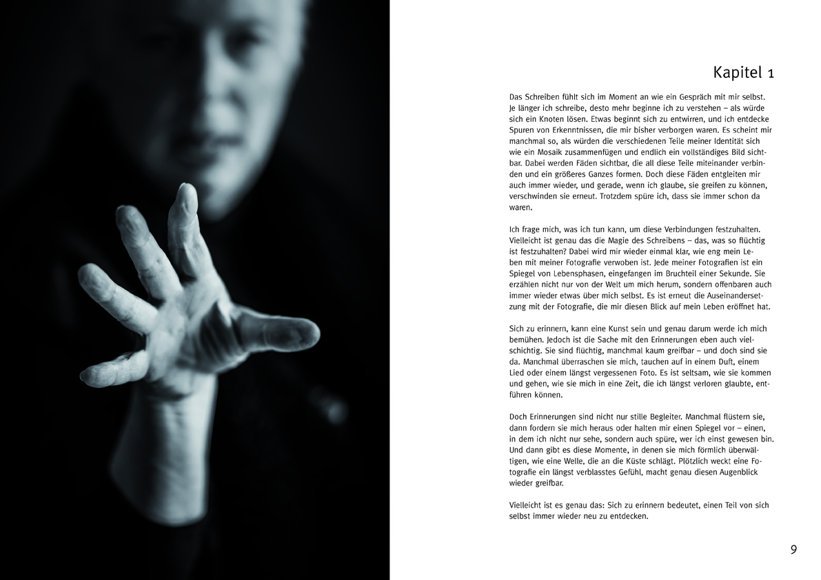 Manchmal ist Kreativität für mich ein Zufluchtsort und so kam es, dass ich einen Anker brauchte, in einem Moment, in dem ich mich mit Arbeit ablenken musste – und es hat funktioniert. Deshalb habe ich meine Texte mit Fotografien kombiniert und in ein Layout gebracht, das nicht nur erzählt, sondern auch zeigt.
