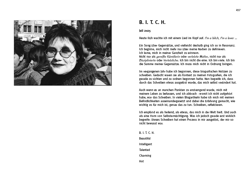 Ich schreibe, um mich zurückzuholen aus den Fremdzuschreibungen, dem Schweigen, Missverständnissen, aus Fotos, die man anders deutete, als ich sie gemeint hatte. Jahrzehntelang haben andere erzählt, was sie in meinen Fotografien sahen. Ich habe selten widersprochen. Doch jetzt erzähle ich, was ich sah, was mich antrieb, was mich verletzte, was mich hielt.